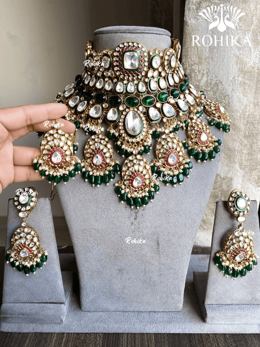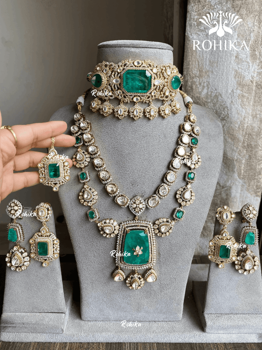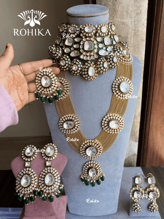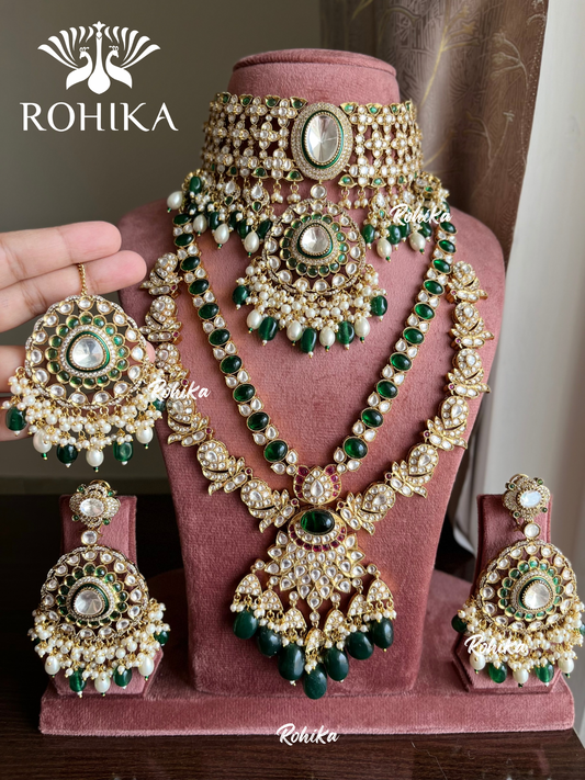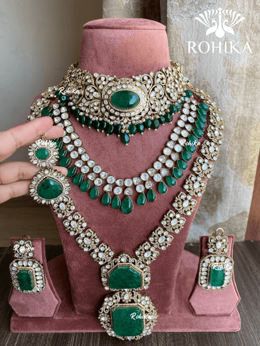 Anvika Polki Kundan Bridal Combo Set - Dark Green