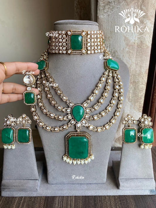 Divyam Moisanite Necklace Combo Set - Dark Green