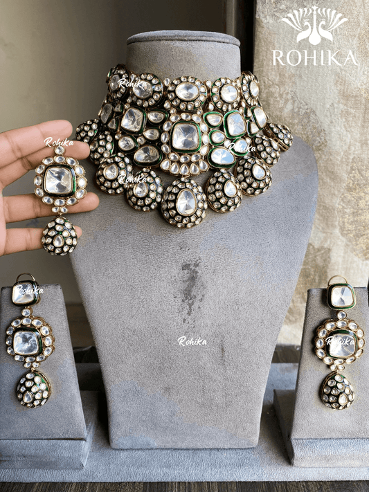 Falak Moisanite Polki Kundan Necklace Set - Green