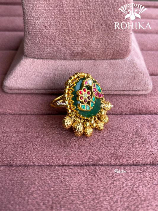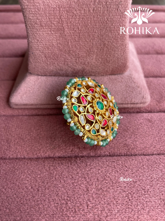 Padmini pachhi kundan ring (SG-156) - Ruby Green