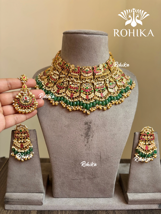 Tulsi Polki Kundan Bridal Necklace Set - Dark green