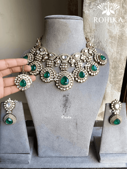 Anokhi Polki Kundan Bridal Necklace Set - Dark green