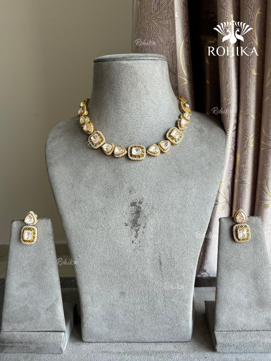 Falak Moisanite Polki Kundan Necklace Set - Green
