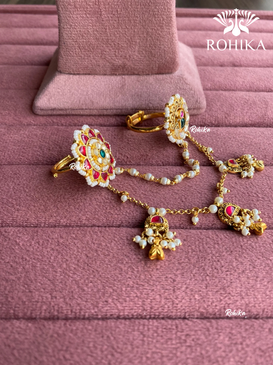 Padmini pachhi kundan ring (SG-158) - Red & Green