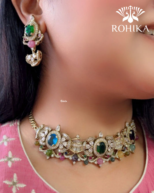 Saabya inspired fusion necklace set (SS021) - Multi colour