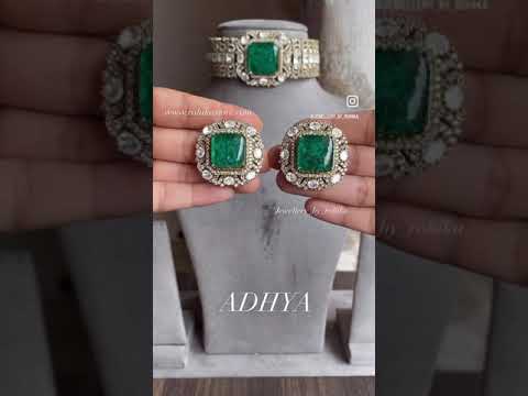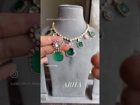 Aisha American diamond necklace set - Green (Rosegold polish)