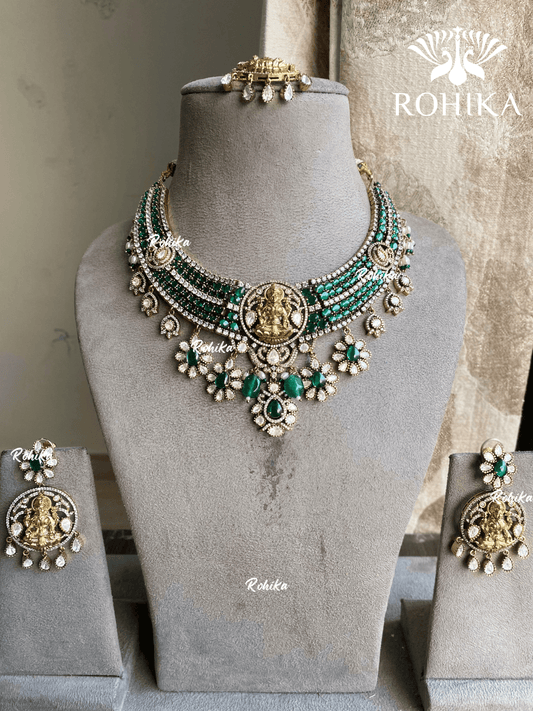 Laxmi moisanite polki necklace set - Dark Green