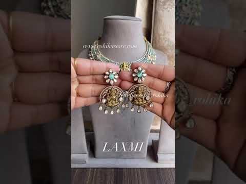 Laxmi moisanite polki necklace set - Mint Green