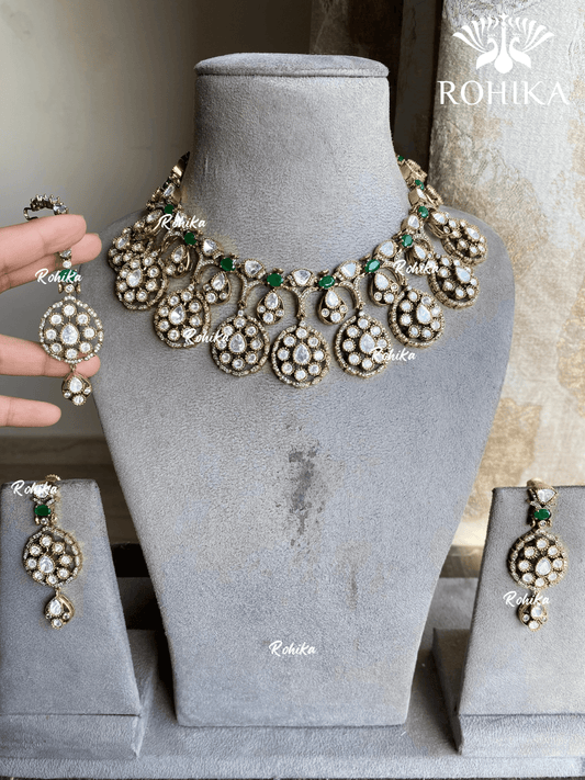 Payal dabi Kundan necklace set - Mint and Pink (Multi)