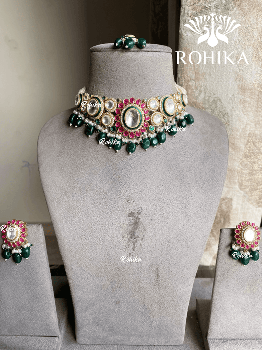 Pragya polki kundan choker set - Dark Green