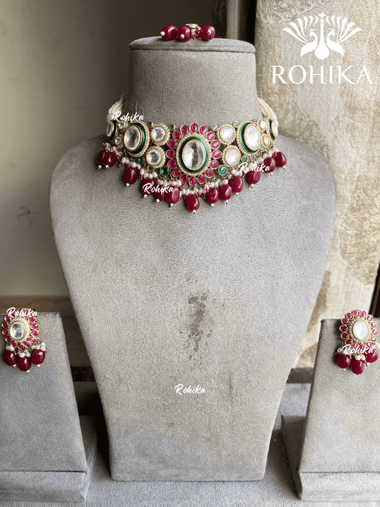 Pragya polki kundan choker set - Red / Maroon