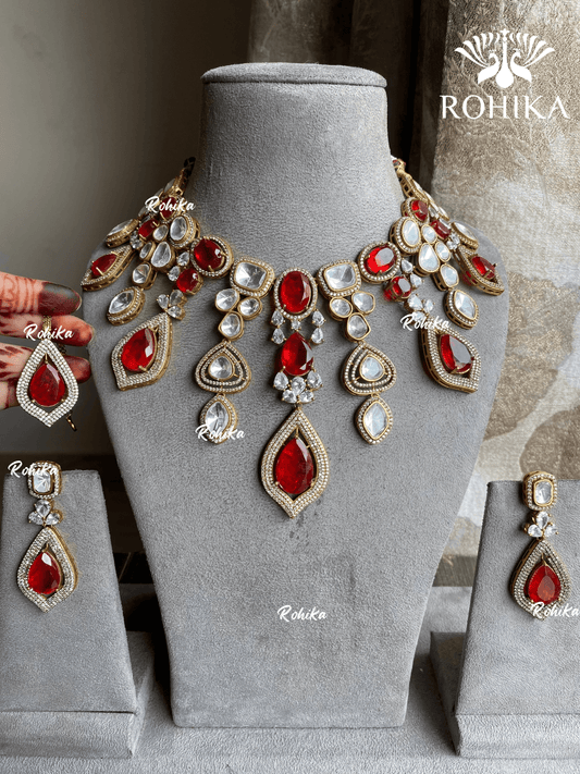 Saira american diamond necklace set - Red