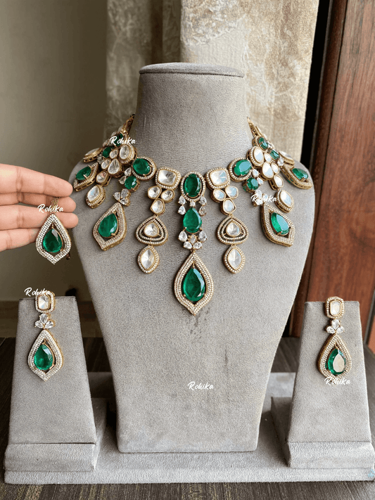 Sahas doublet kundan necklace set - Dark green