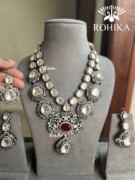 Shubh Polki Kundan Necklace set - Red
