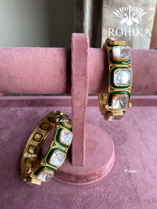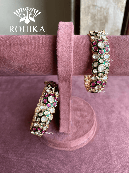 Moisanite polki kundan kada/bangles (MB-0100) - Green & pink