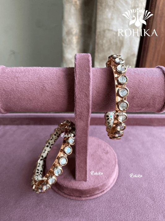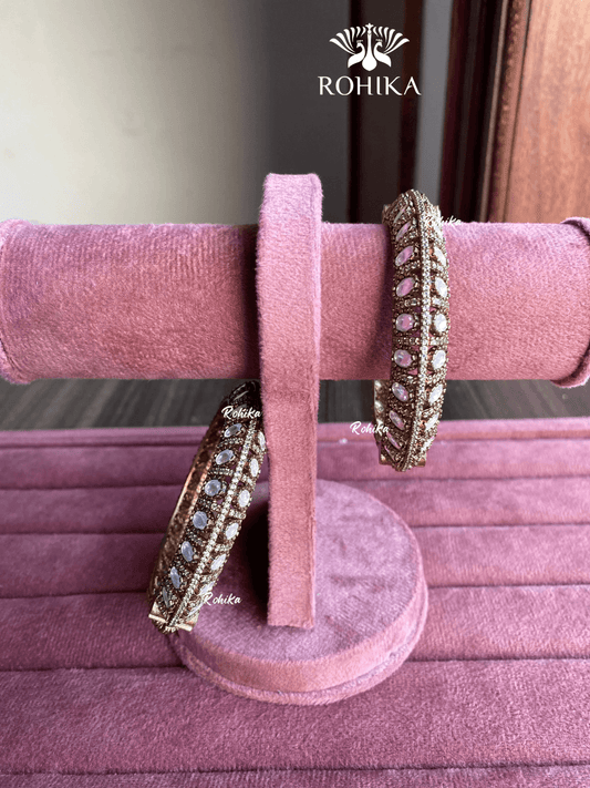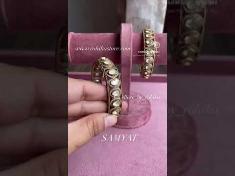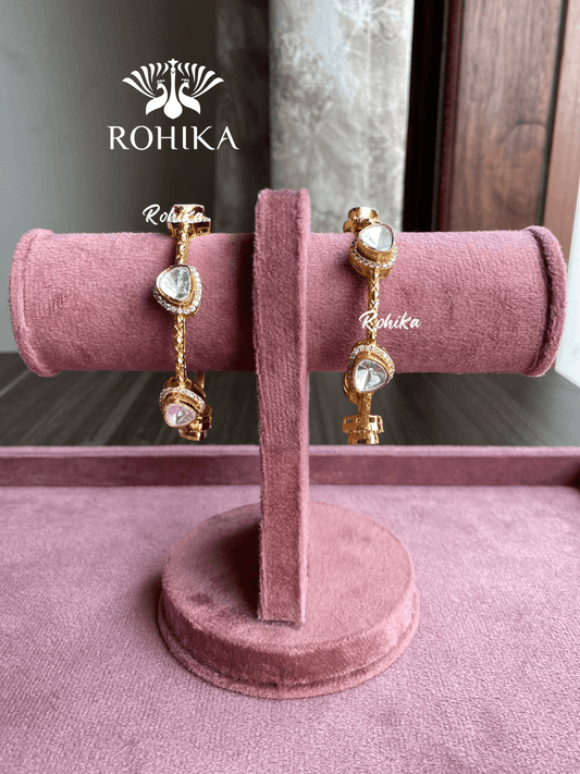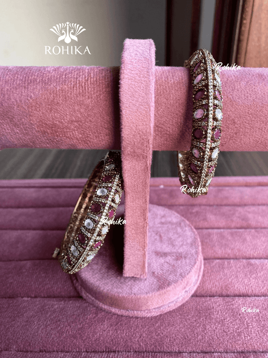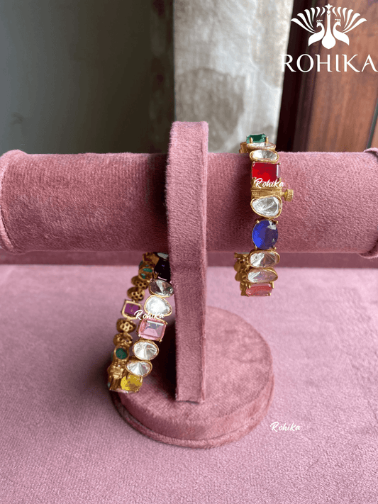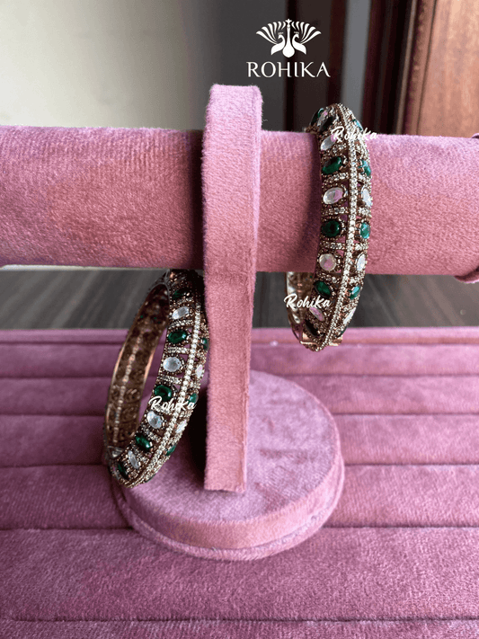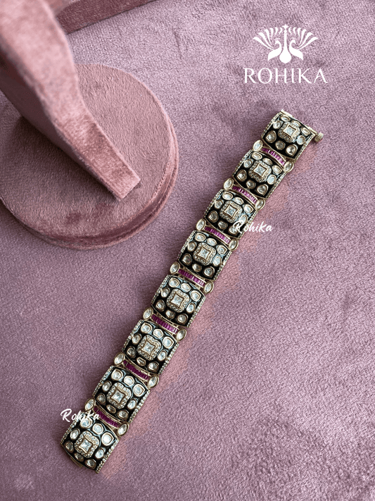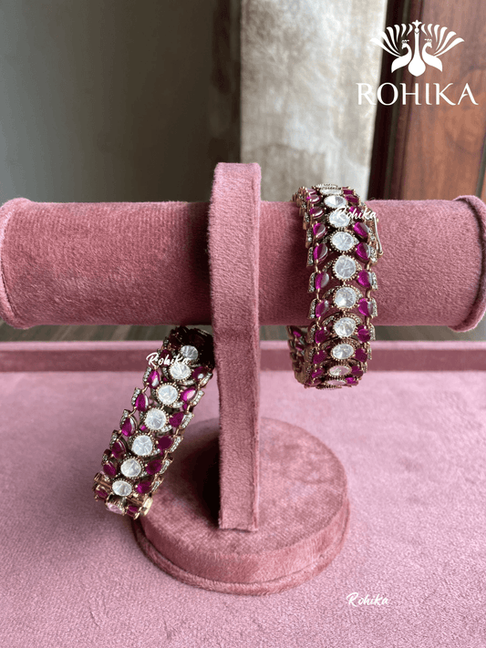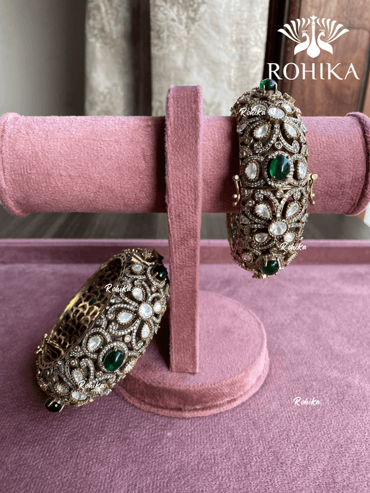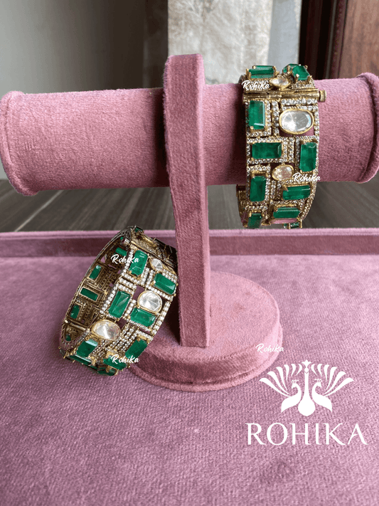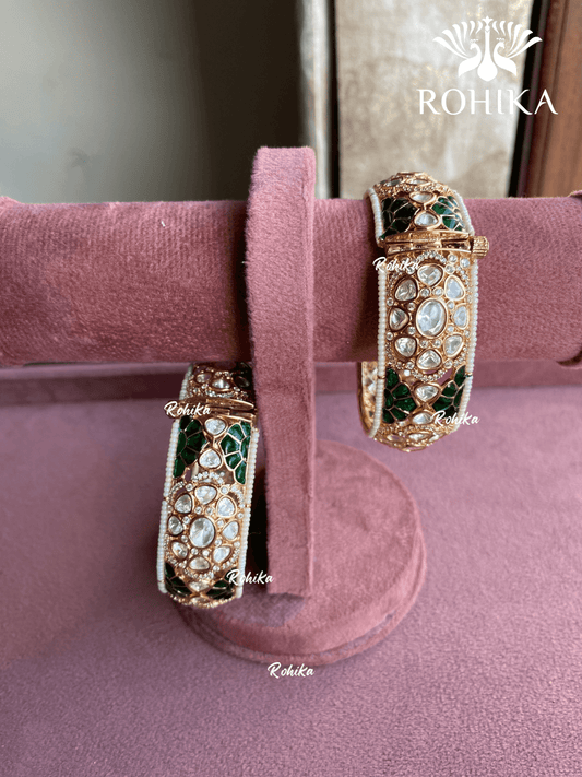 Anhita polki kundan meenakari bracelet/kada (004) - Dark green/Pink