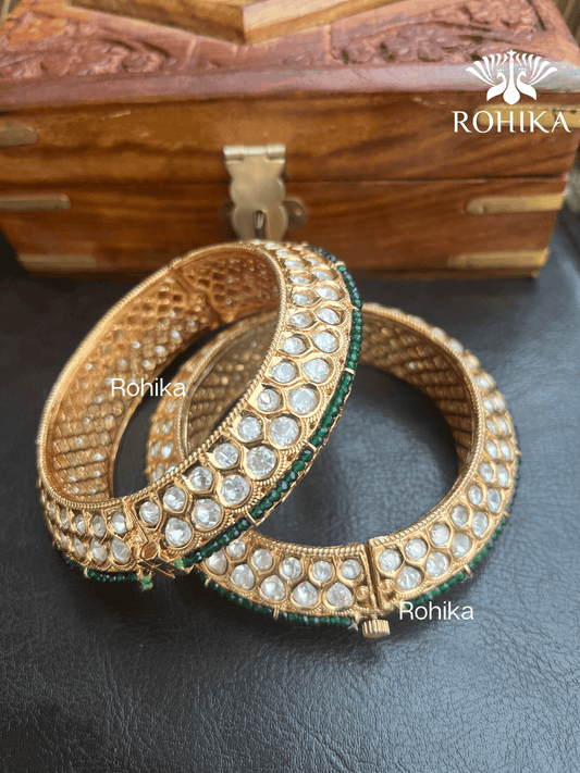 Mahim polki kundan kada/bangles - Green and Rose gold polish