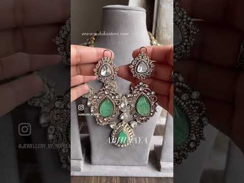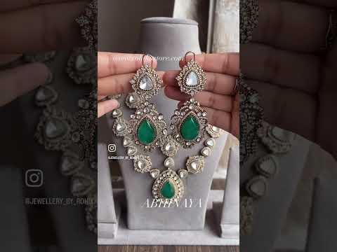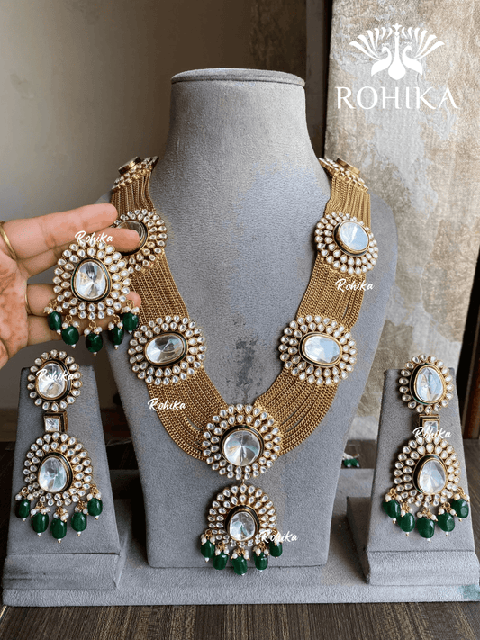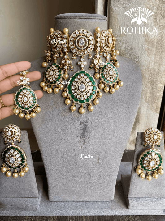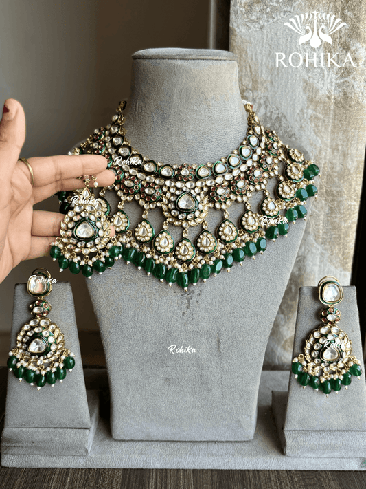 Abhinaya Polki Kundan Necklace set - Dark Green