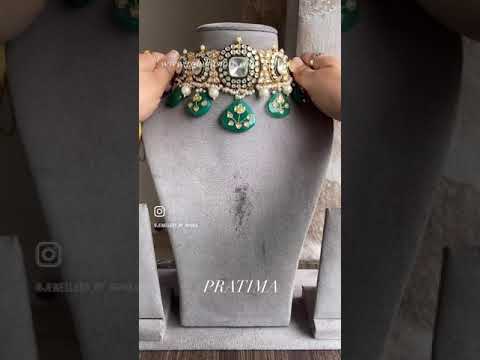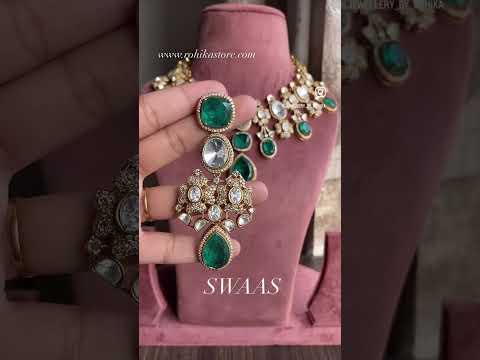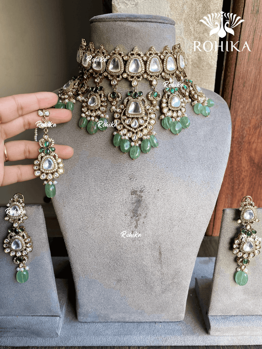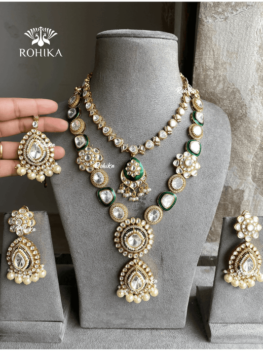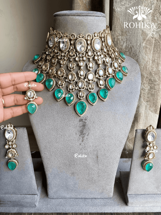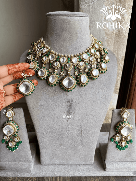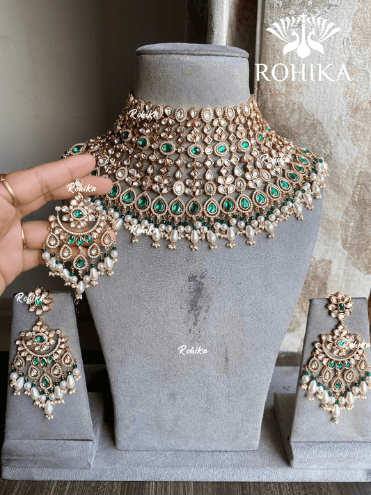 Chintan moisanite bridal necklace set - Green