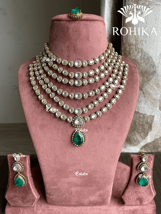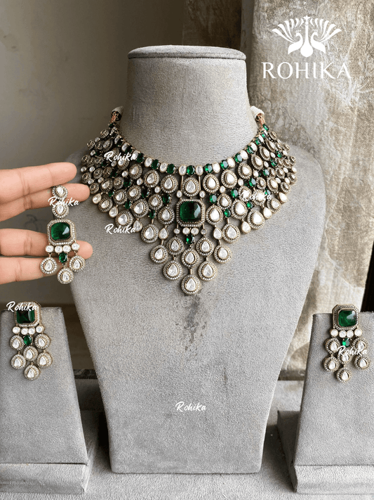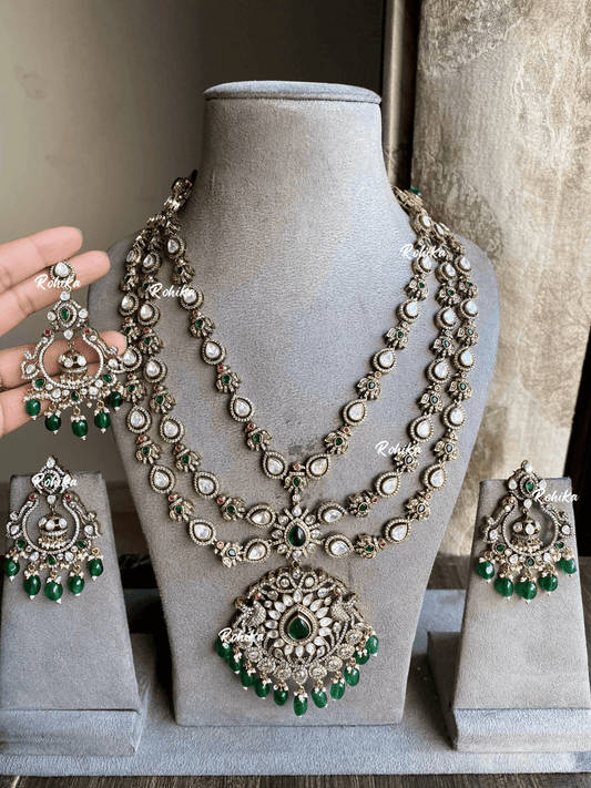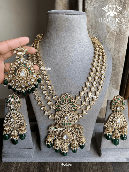 Anksh moisanite necklace set - Dark Green