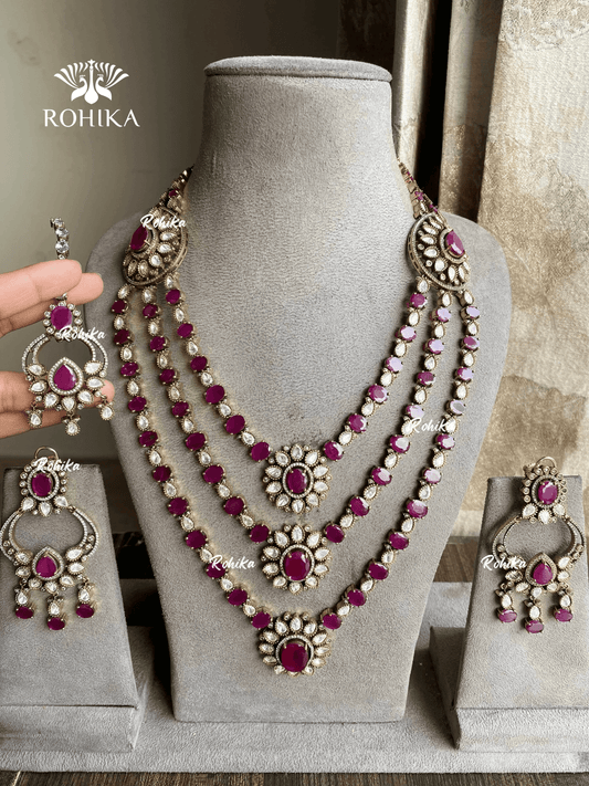 Ekatra moisanite long necklace set - Magenta pink