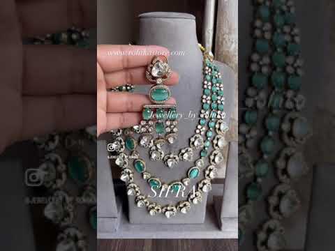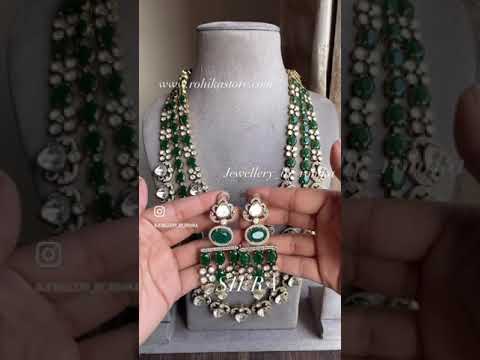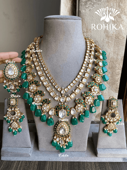 Anika bikaneri jadau kundan long necklace set - Dark green