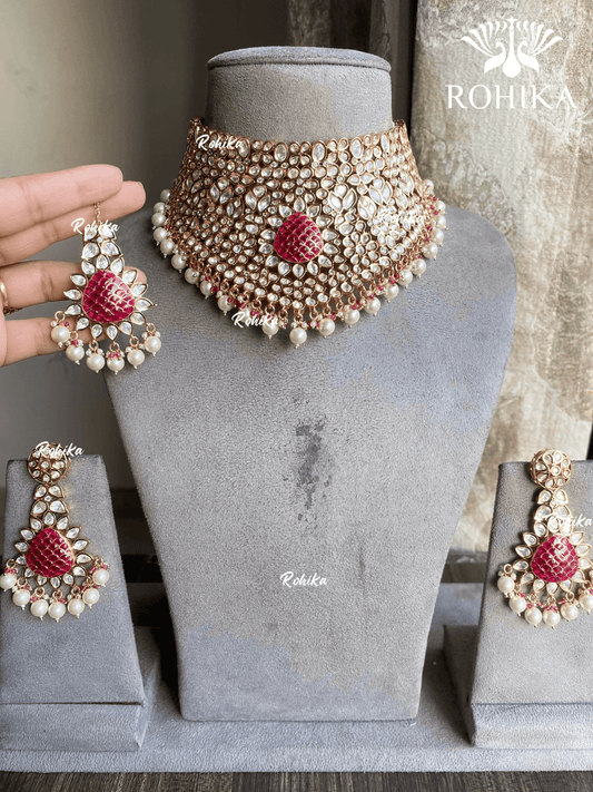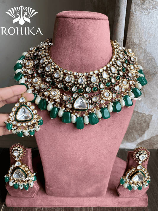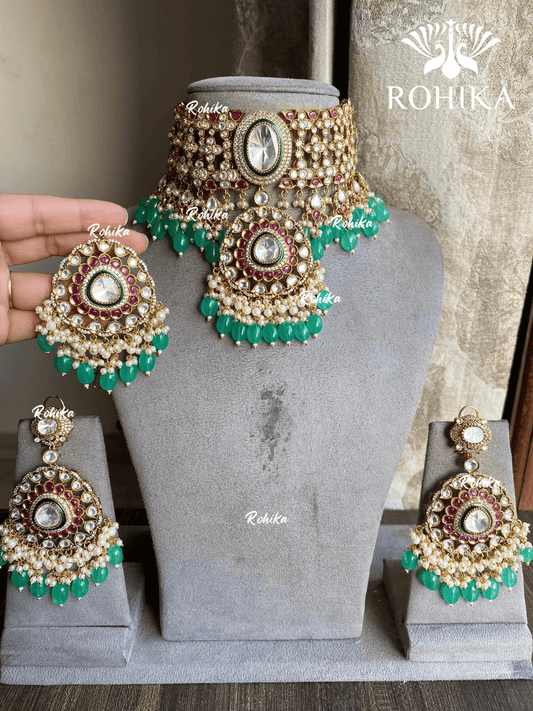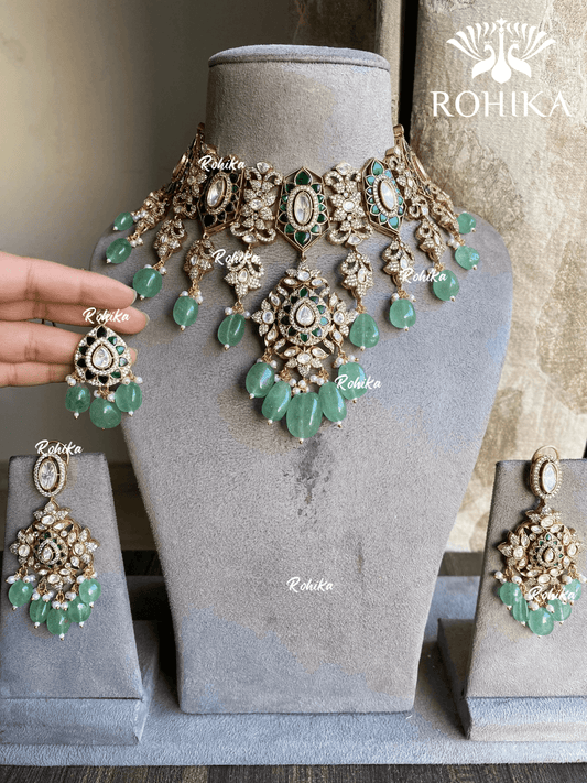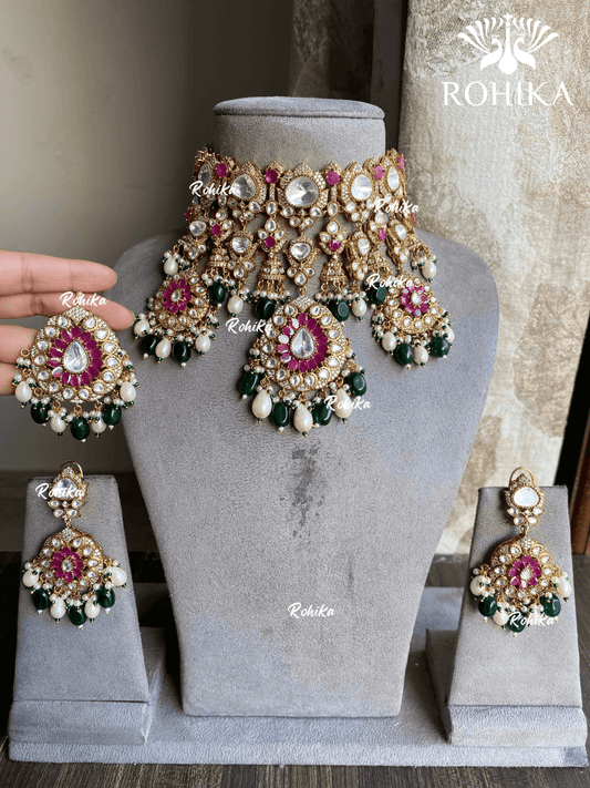 Prithvi moisanite polki kundan choker set - Green and Ruby