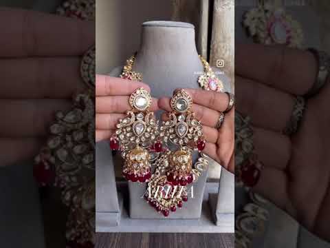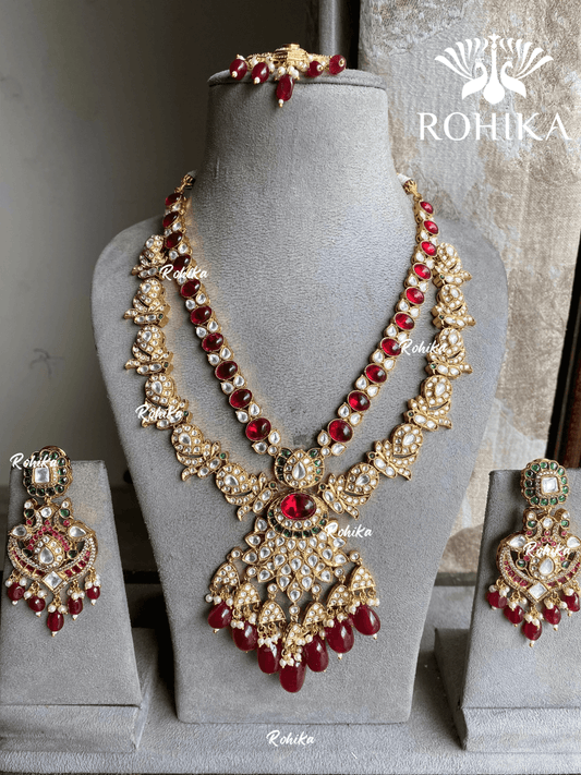 Aleya bikaneri polki kundan long necklace set - Red/Maroon