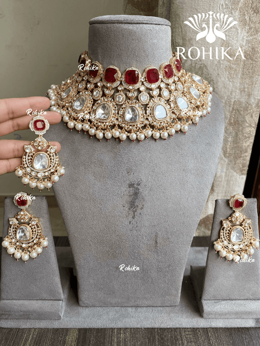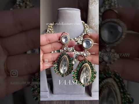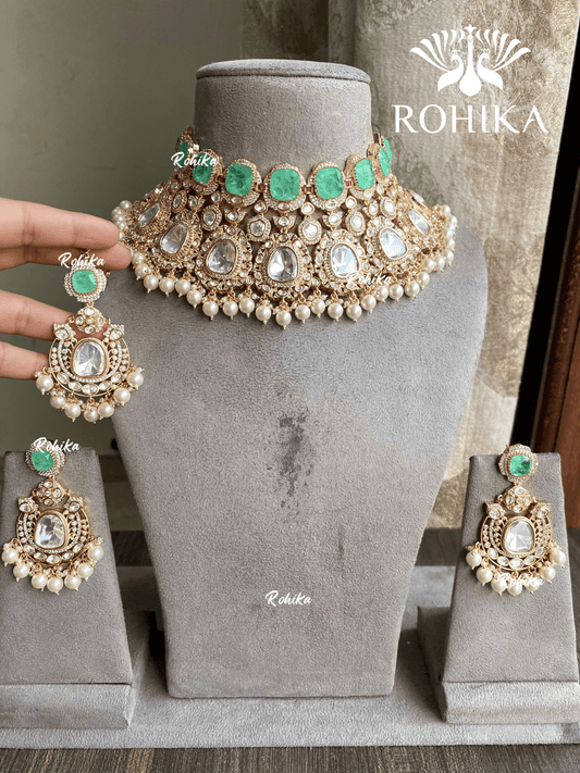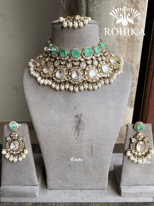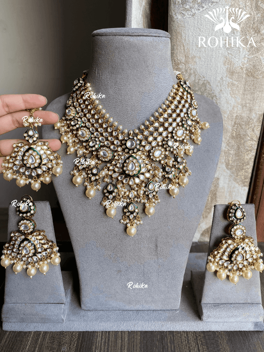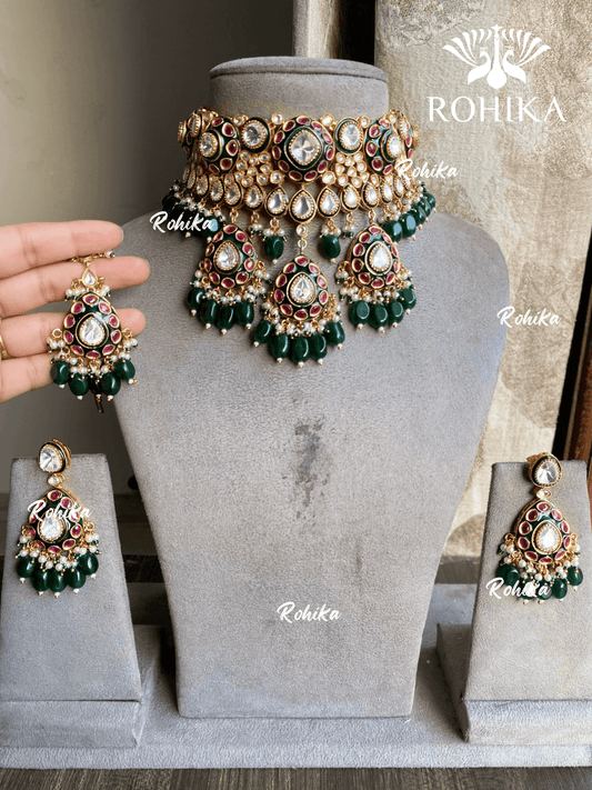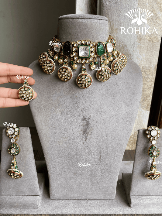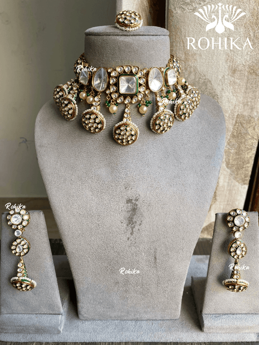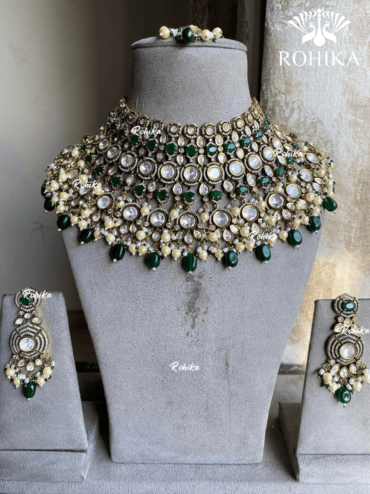 Dharini Polki Kundan Bridal Necklace Set - Dark Green
