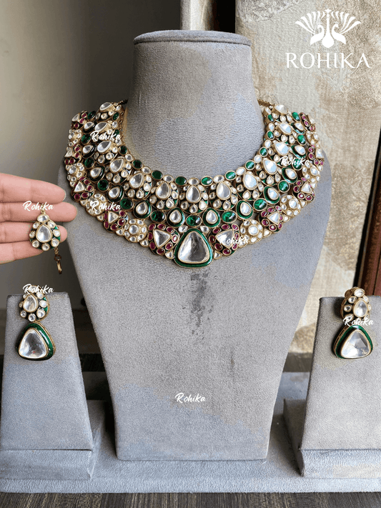 Anita Bikaneri Jadau Kundan Choker Set - Green and Pink