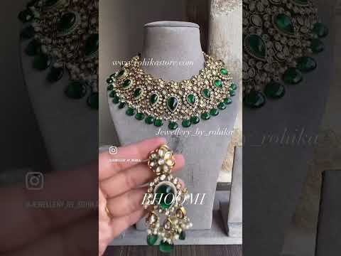 Anmol bikaneri jadau kundan bridal combo set - Green and Pink