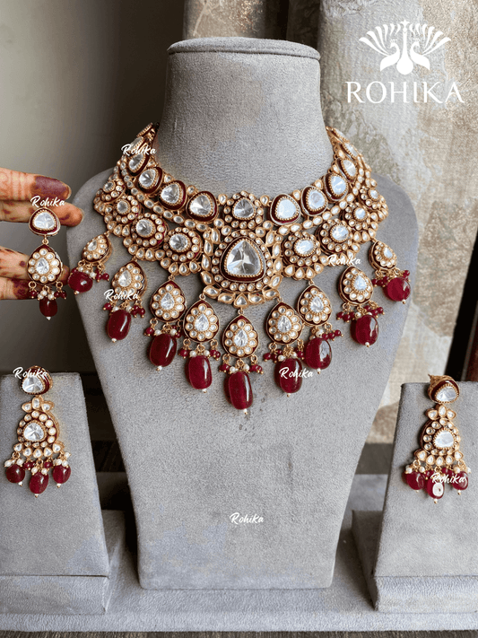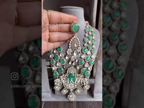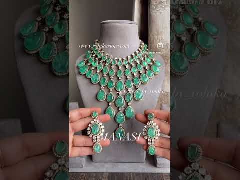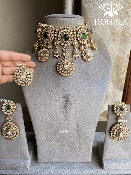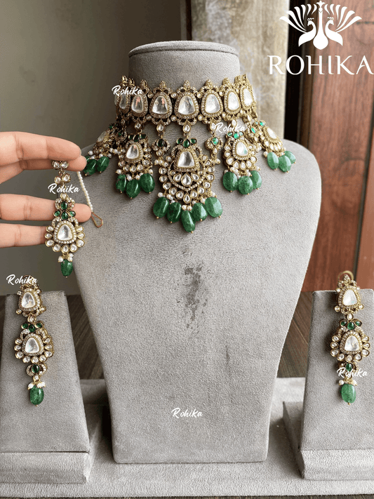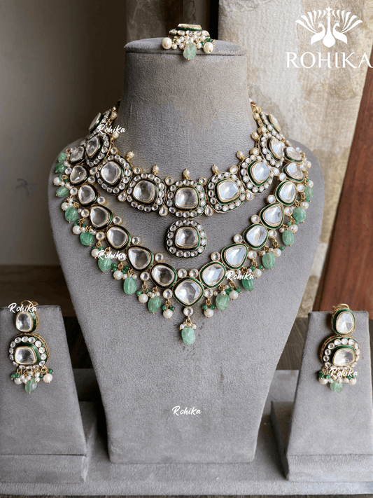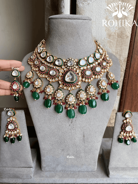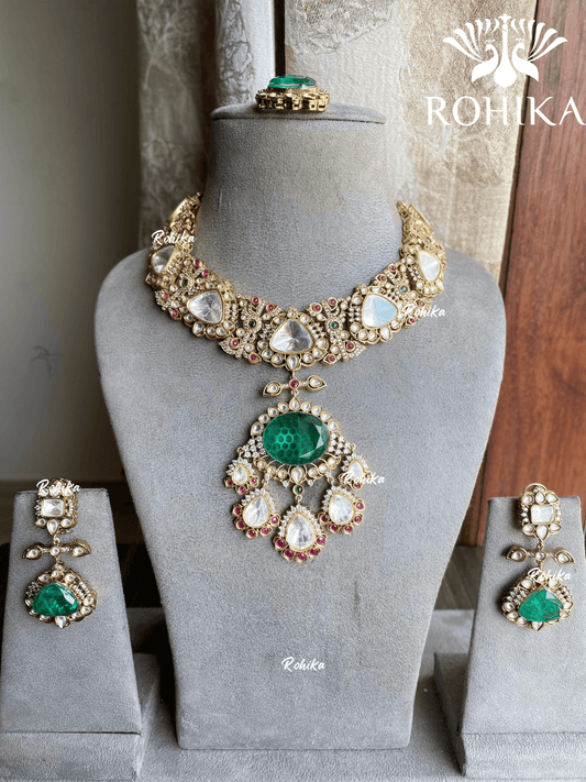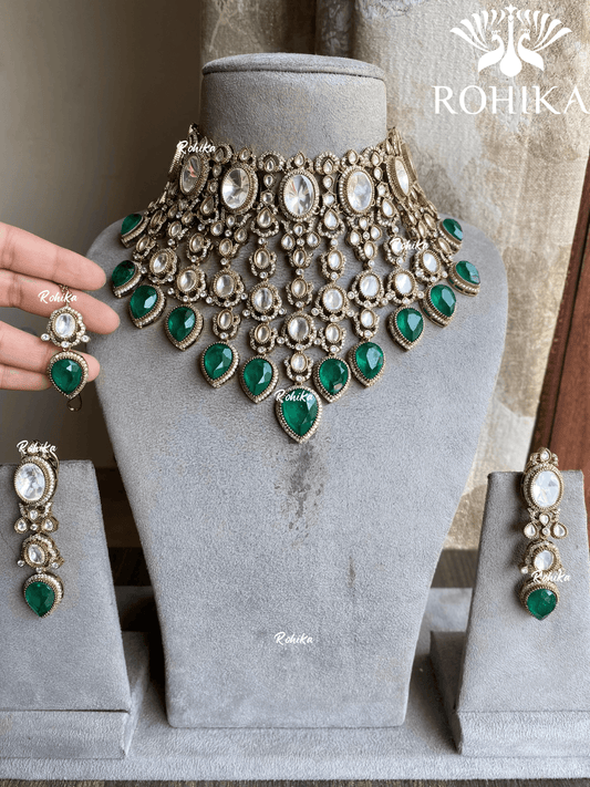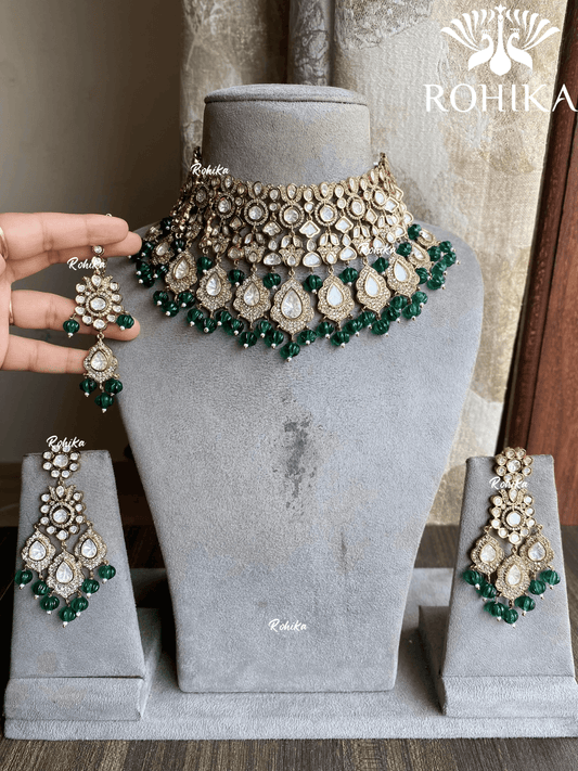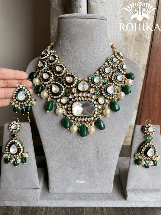 Sharan moisanite doublet bridal necklace set - Dark Green