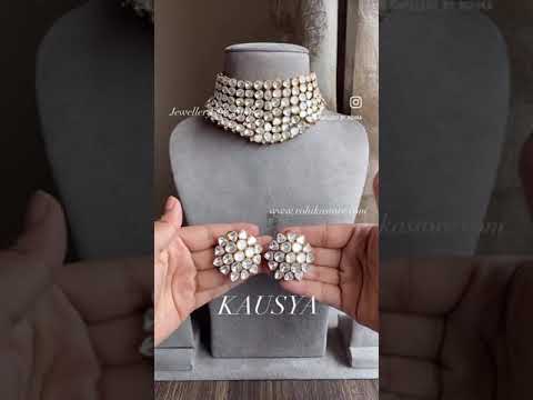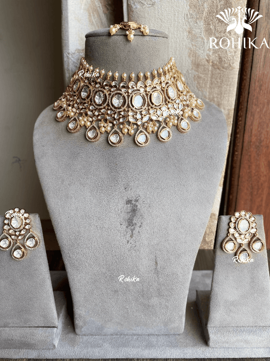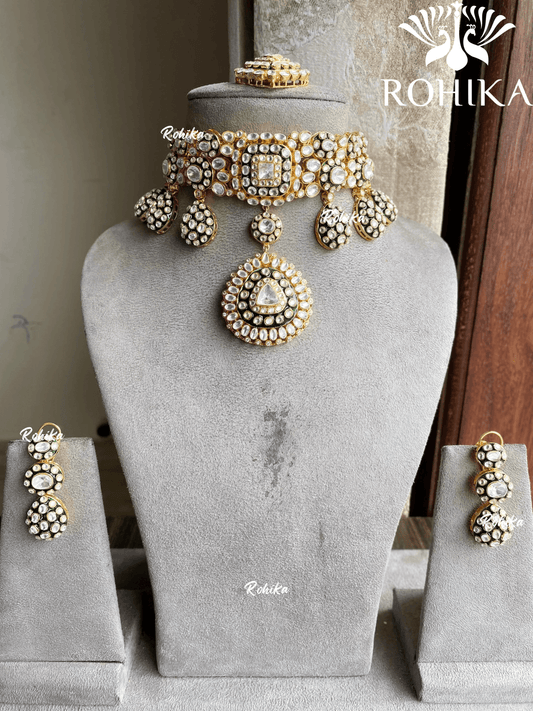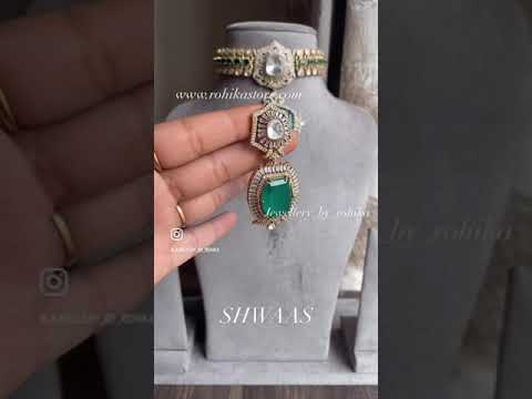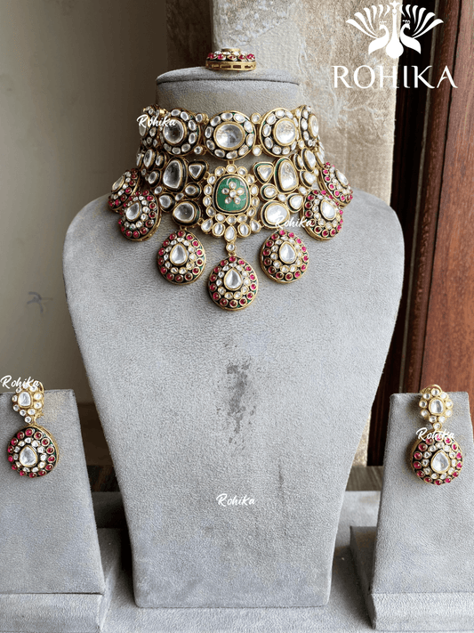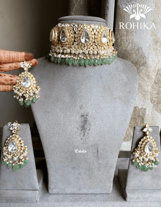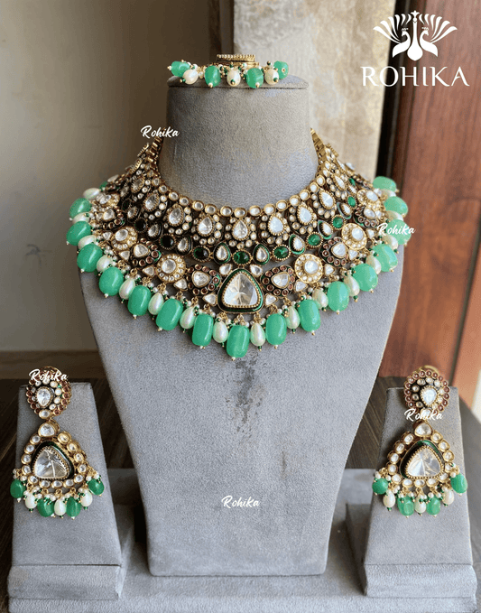 Raima bikaneri polki kundan choker set - Mint green and pink