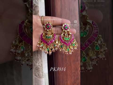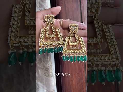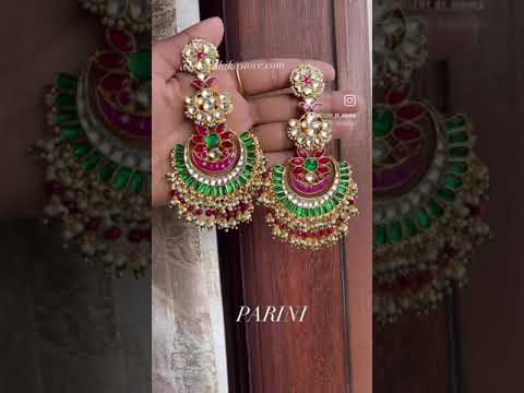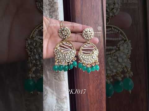Parini pachhi kundan earrings (PKJ010) - Green & pink