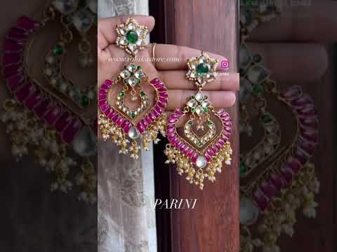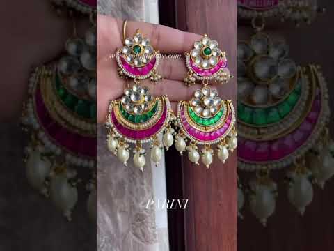 Parini pachhi kundan earrings (PKJ015) - Green & pink