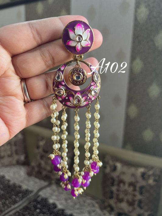 Rimjhim Meenakari pearl earrings-Navy Blue
