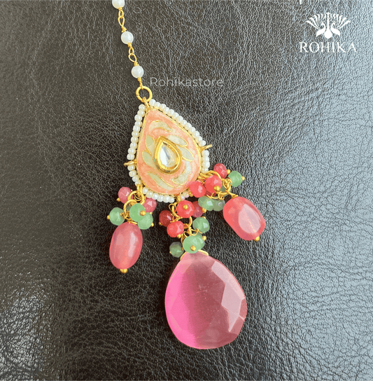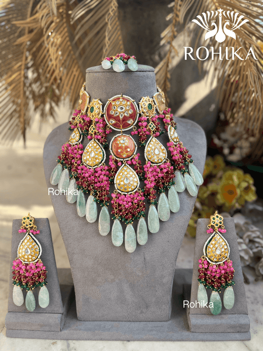 Mehnaaz meenakari choker ser - Sea green and Pink