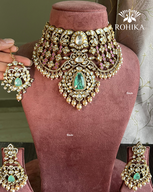 Divita Moisanite Kundan Choker Set - Ruby Red