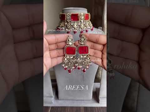 Prithvi moisanite polki kundan choker set - Green and Ruby