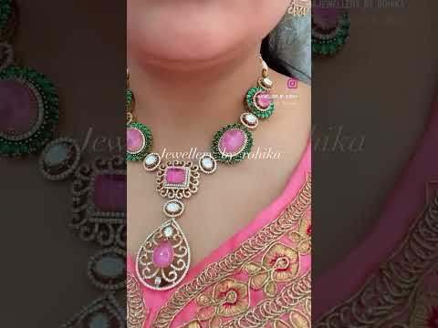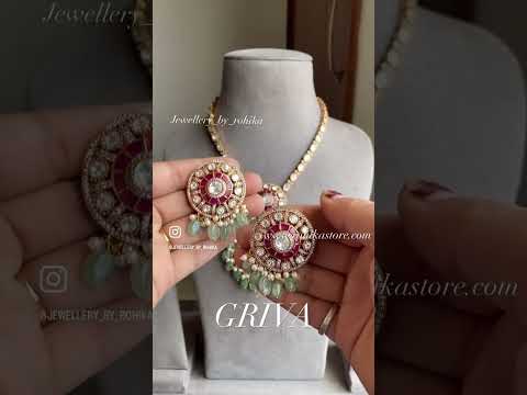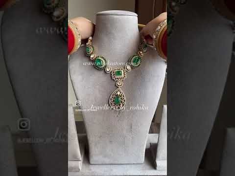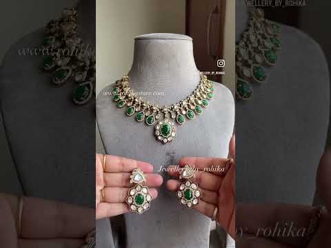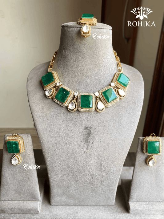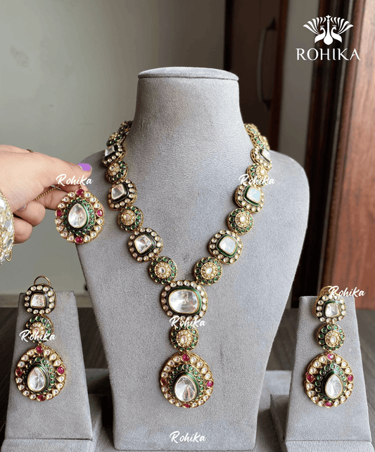 Ushani Bikaneri Kundan Necklace Set - Dark Green