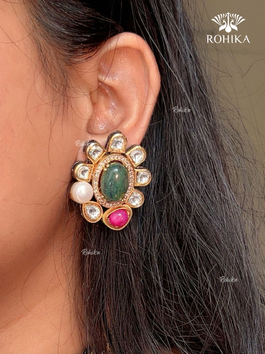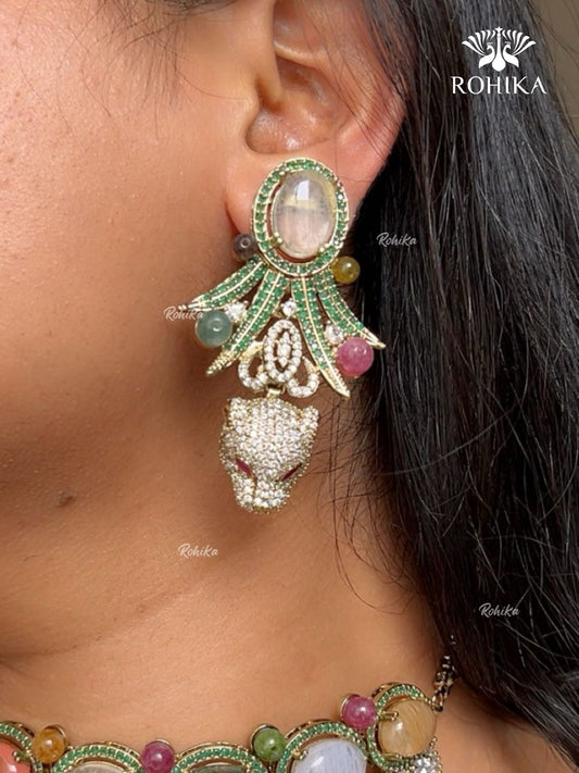 Piya fusion jhumka earrings with earchains(EE-004)- Green