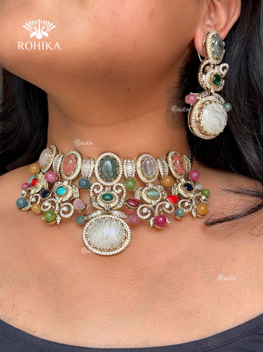 Saabya inspired fusion choker set (SS029) - Multi colour