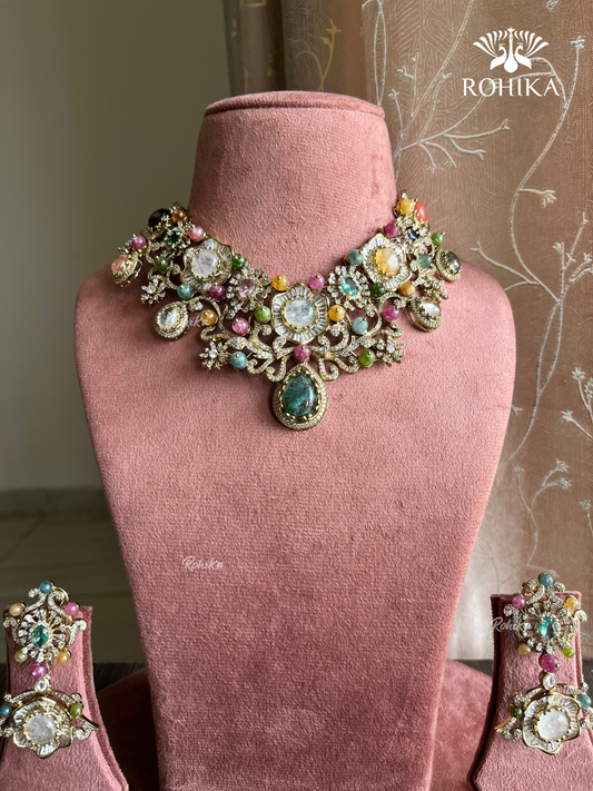 Saabya inspired fusion choker set (SS025) - Multi colour