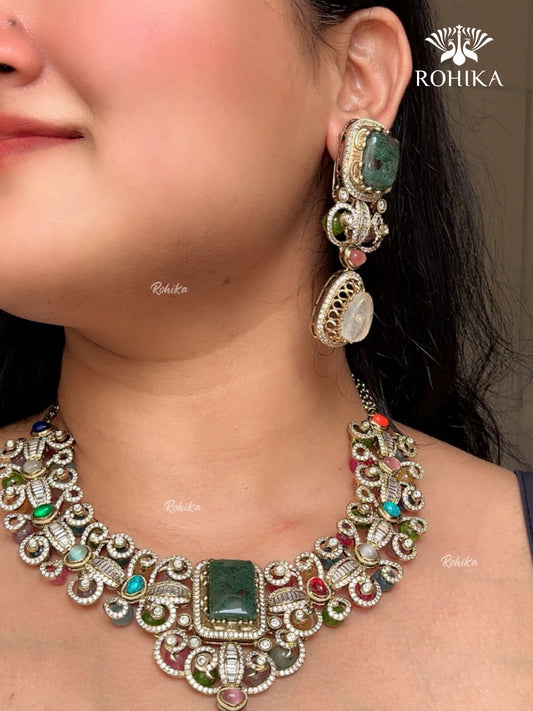 Saabya inspired fusion necklace set (SS031) - Multi colour