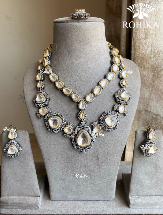 Medha Polki Kundan Doublet Necklace Set - Dark green