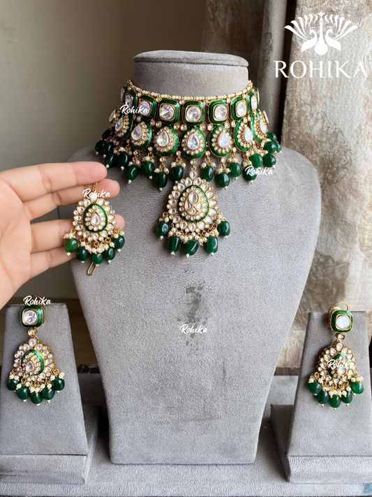 Anokhi Polki Kundan Bridal Necklace Set - Dark green