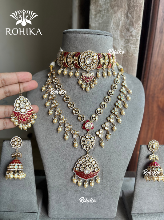 Anvika Polki Kundan Bridal Combo Set - Dark Green