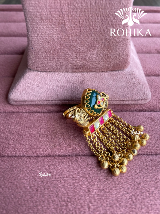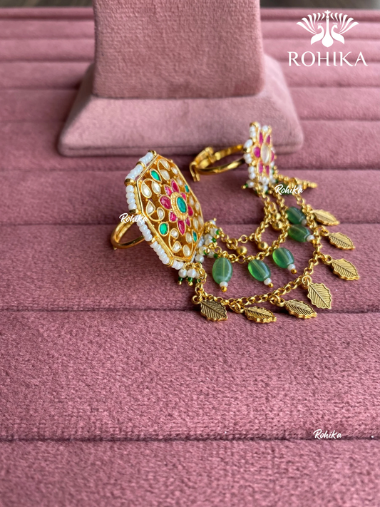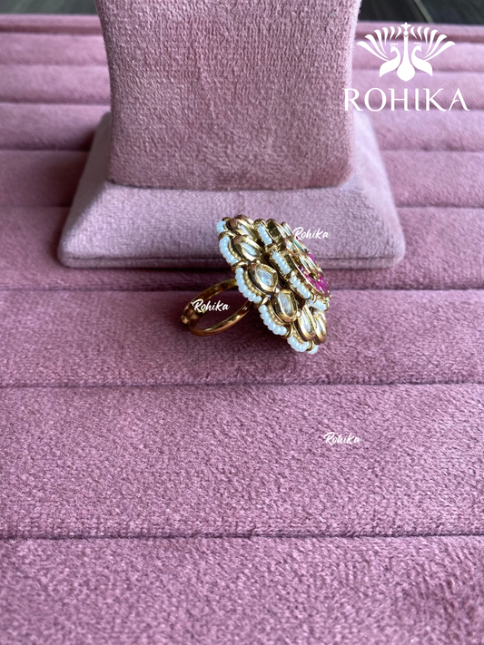 Padmini pachhi kundan ring (SG-163) - Mint Green & Red