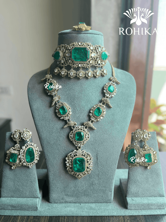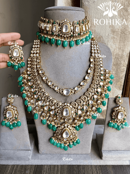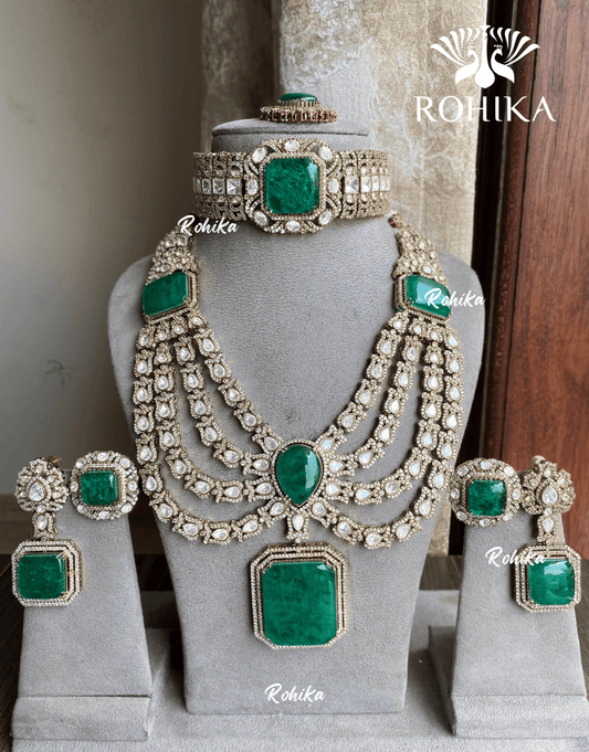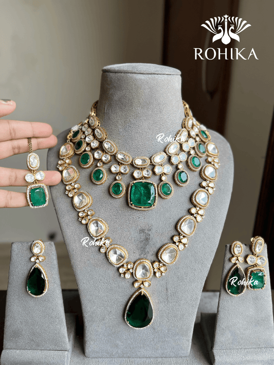 Ekisha Moisanite Polki Bridal Combo Set - Green
