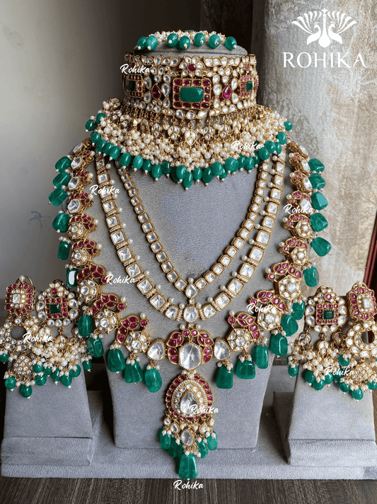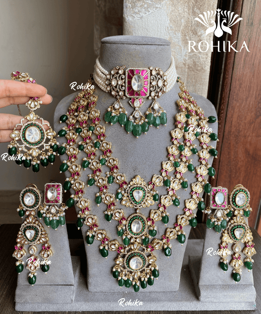 Anmol bikaneri jadau kundan bridal combo set - Green and Pink